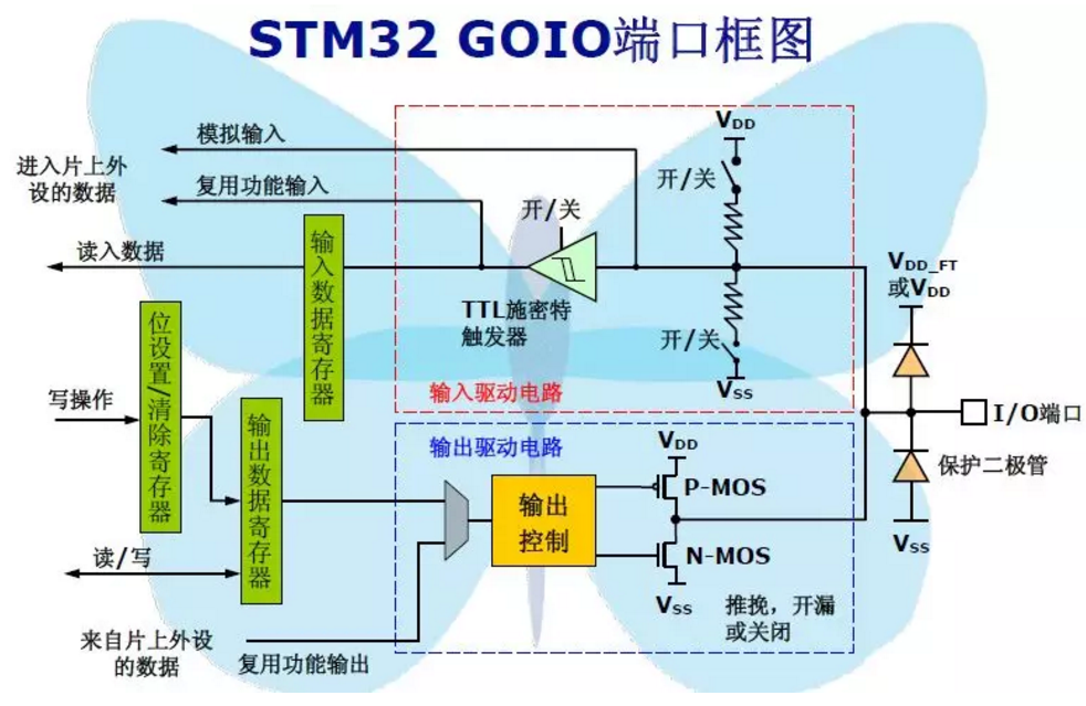 7、GPIO口貌似有兩個(gè)反向串聯(lián)的二極管用作鉗位二極管