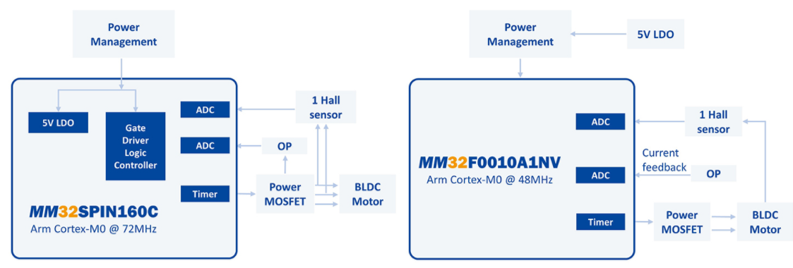 在單相控制上也可以選用MM32F0010A1NV來達到更好的BOM cost。