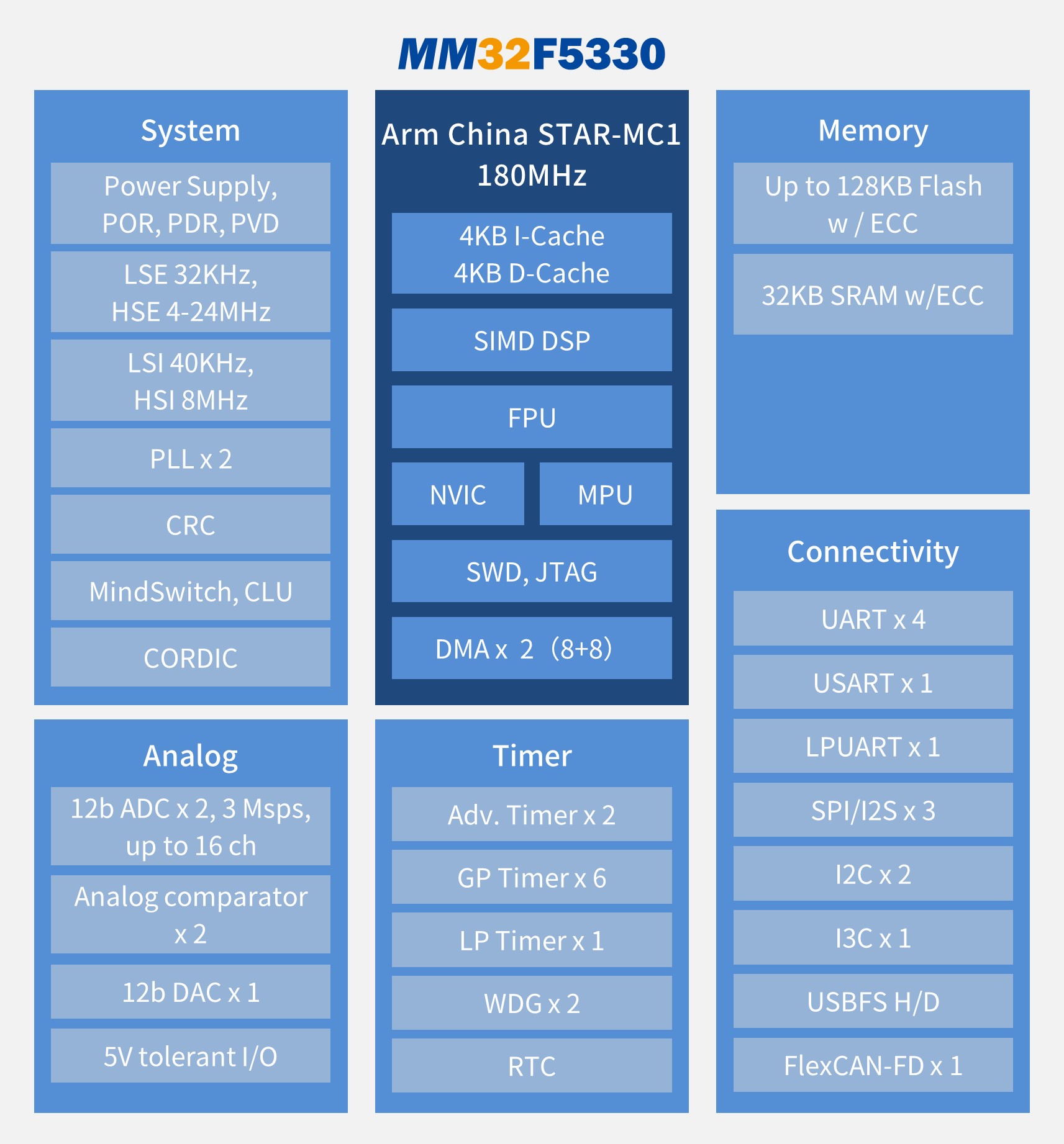 Armv8-M架構(gòu)STAR-MC1處理器單片機(jī)MM32F5330系列
