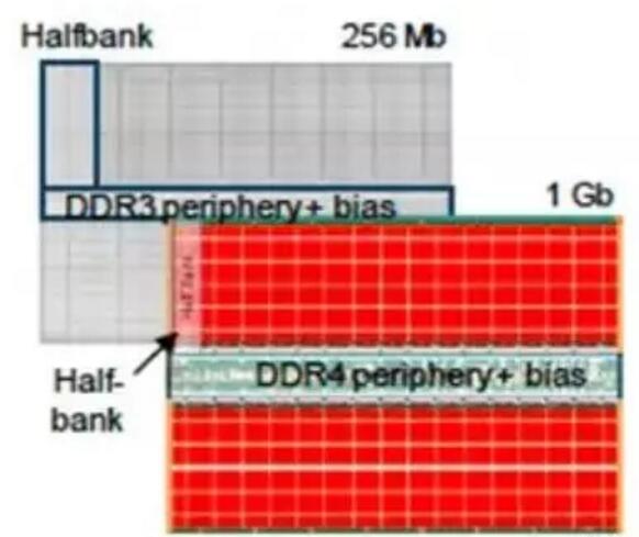 圖1. Everspin 40nm 1.5nm DDR3 256 Mb(頂部)和1.2V DDR4 28nm 1 Gb(底部)