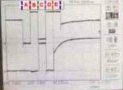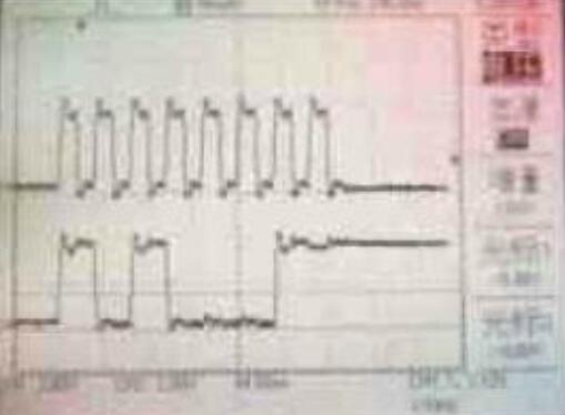 將示波器的通道1連接到寫使能信號,通道2連接到數(shù)據(jù)端D7。如圖1 所示,上方的波形為通道1接收的數(shù)據(jù),下而的波形為通道2接收的數(shù)據(jù)。設(shè)計輸入向量測試,當(dāng)?shù)刂窞镺OO時,將片選端CS置為低電平,圖1 中,A區(qū)WT=*0”,RD=“1“,RD= “0”,讀出寫入數(shù)據(jù) 為“0”; B區(qū)WT=“1”,數(shù)據(jù)為“0”; C 區(qū)WT=“0”,RD=“1”,寫入數(shù)據(jù)為“1”D 區(qū)WT-“1”,RD-“1”,為了更好地觀察讀出“1”時端口的電平變化,該段不進(jìn)行讀寫,在輸出端口上加弱的低電平信號; E區(qū)WT=“1”,RD=“0”,讀出數(shù)據(jù)為“1”,可明顯地看到讀出數(shù)據(jù)“1”的過程。從圖中可以看到數(shù)據(jù)“0”和“1”被成功地寫入和讀出。