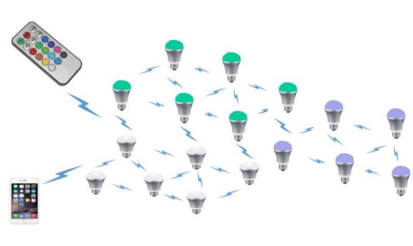 該方案采用巨微創(chuàng)新的MG-Mesh系統(tǒng)架構(gòu),用最低成本實現(xiàn)LED自組網(wǎng)和調(diào)光調(diào)色。手機和遙控器都可以控制。