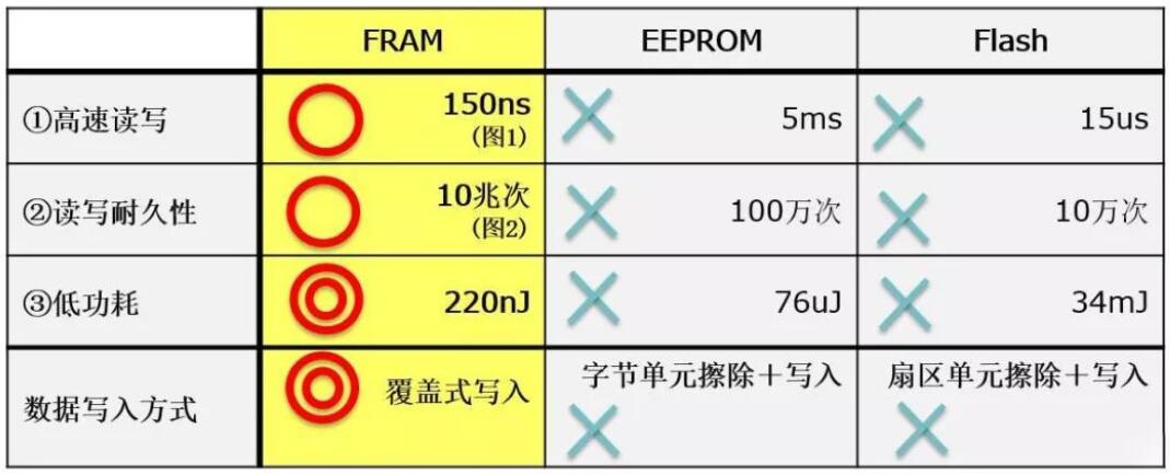 FRAM具有ROM和RAM的特點(diǎn),在高速讀寫入、高讀寫耐久性、低功耗和防竄改方面具有優(yōu)勢。