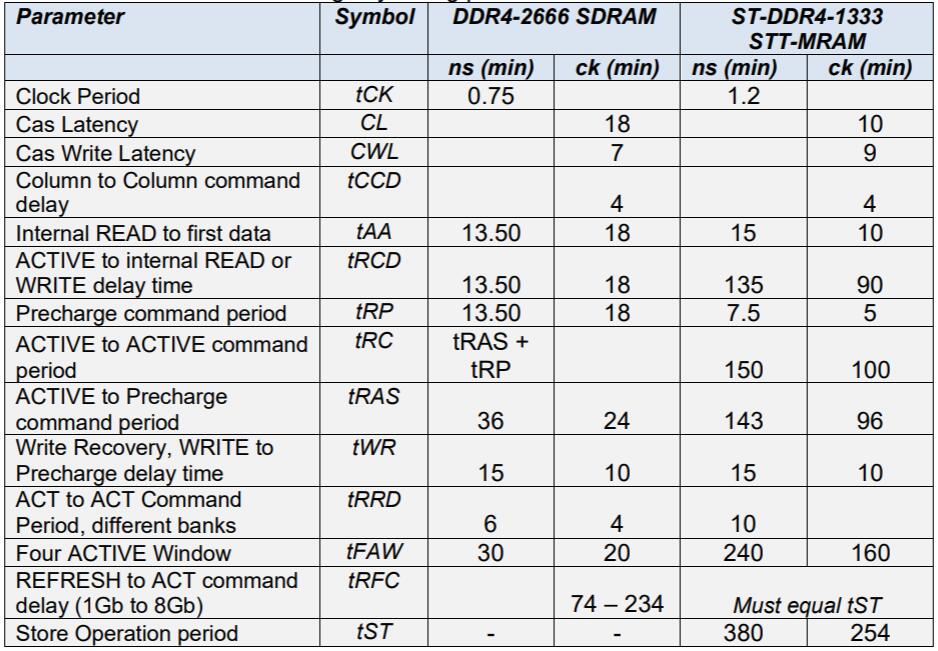 該表顯示了DDR4和ST-DDR4的關鍵時序參數(shù)