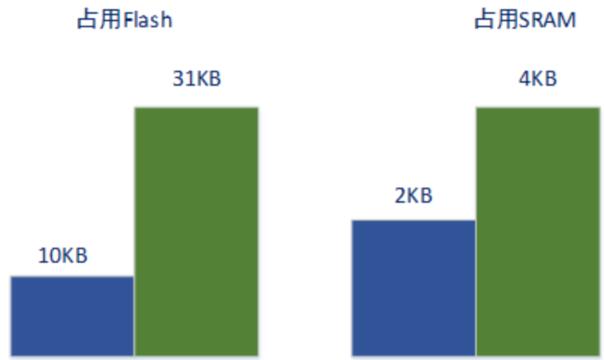 同時(shí)巨微BLE協(xié)議棧充分優(yōu)化和減少了對(duì)MCU的資源需求。以ARM Cortex-M0為例,實(shí)現(xiàn)BLE連接應(yīng)用需要的系統(tǒng)資源如下: