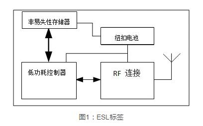 結(jié)構(gòu)最簡單的ESL由一個LCD或電子、RF模塊、墨水顯示屏、配套處理器、紐扣電池和低引腳數(shù)存儲器(易失性和非易失性存儲器)構(gòu)成。可以根據(jù)需求功能的不同,將所需要的價格走向,購買走向和當(dāng)前庫存信息存儲在ESL中,待一天結(jié)束刷新中央服務(wù)器的數(shù)據(jù)。如果要實(shí)現(xiàn)用一顆小紐扣電池供電并維持?jǐn)?shù)幾年的工作機(jī)能需要讓整個系統(tǒng)使用一個低功耗控制器和存儲器?;趦?nèi)置的連接選項(xiàng)(通常是BLE或Wi-Fi),板載存儲器可兼作協(xié)議棧存儲空間,繞過商場的中央服務(wù)器,直接連接用戶手機(jī)。