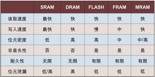 MRAM與其它存儲器的比較